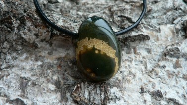 OZJ0292 Anhänger Ozeanjaspis Tropfen A Madagaskar 2,8 cm incl. LB
