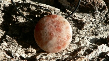 Sonnenstein ist eine Edelsteinvarietät des Plagioklas, die durch Einschlüsse von parallel ausgerichteten Hämatit- oder Goethitplättchen einen sonnenstrahlähnlichen Schimmer bekommt, der ihm seinen Namen verleiht.Er vermag es, den Blick auf eigene Stärken zu lenken, festigt das Selbstwertgefühl und gibt innere Zufriedenheit. Weitere Informationen entnehmen Sie bitte der einschlägigen Literatur in der Steinkunde.