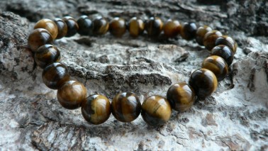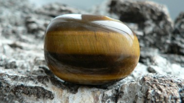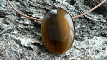 Das Tigerauge gehört zu der Quarzfamilie. Es entsteht durch eine Pseudomorphose von Quarz zu Krokydolith, einem faserigen und eisenreichen Asbestmineral. Es ist mit dem Falkenauge nah verwandt, es kann sogar zu einem Falkenauge "verwittern". Tigeraugen-Vorkommen gibt es in Südafrika und in Nordwestaustralien.Dem Tigerauge wird nachgesagt, dass es bei Entscheidungsfindungen hilft und bei Mutlosigkeit, Stimmungsschwankungen, Stress, Verwirrung und Zweifeln unterstützend wirkt. Es soll das intuitive Verstehen fördern.