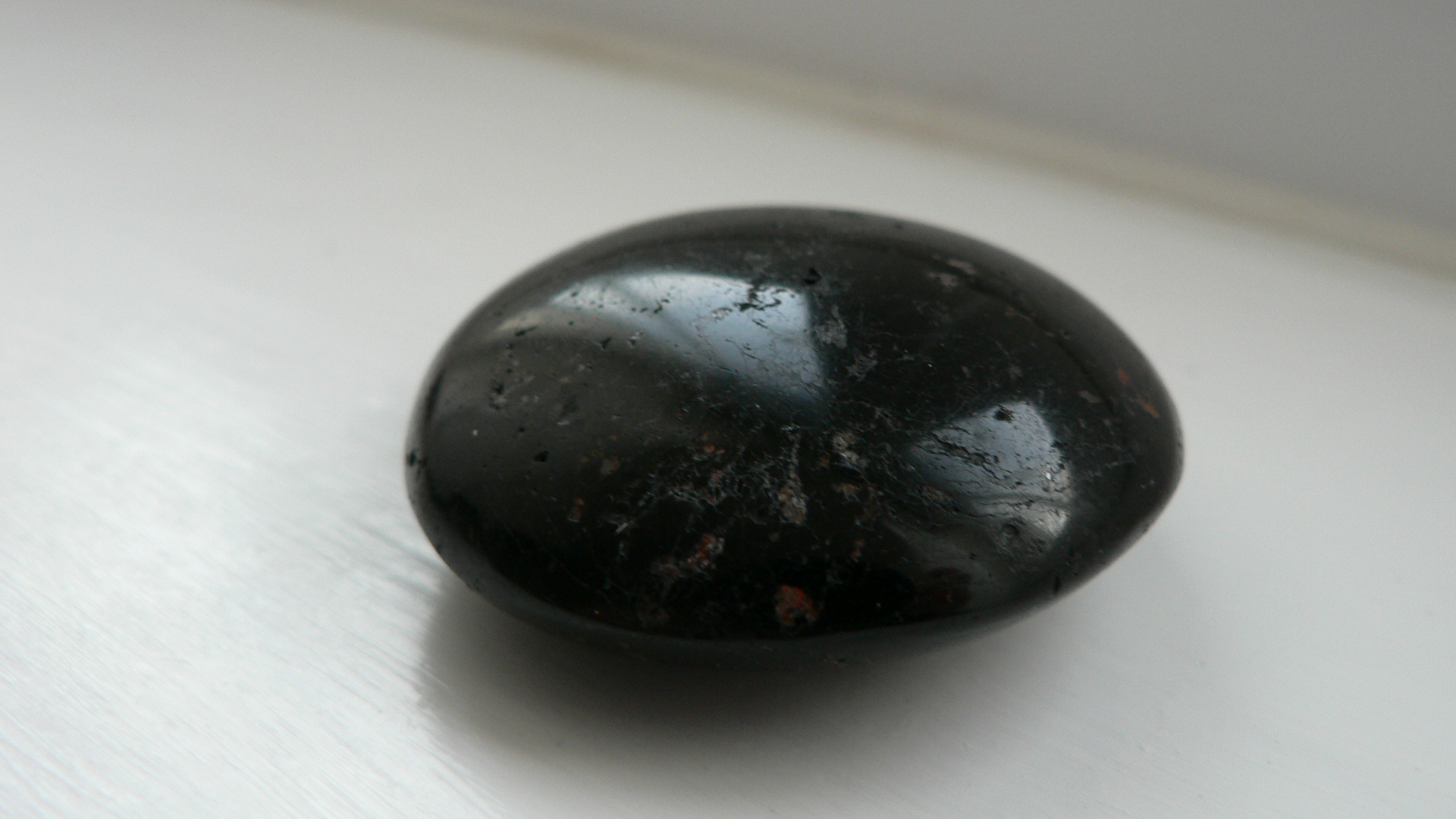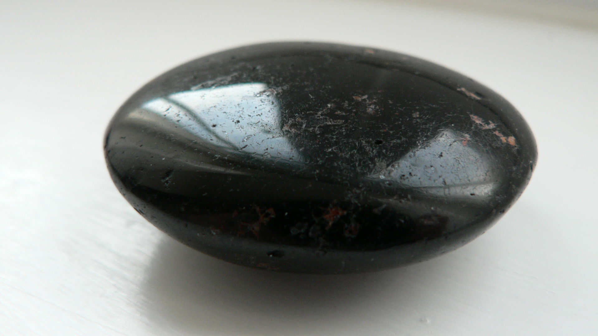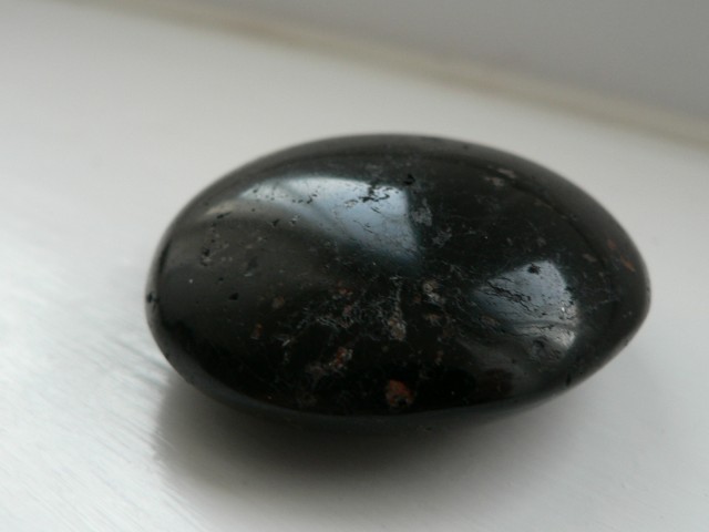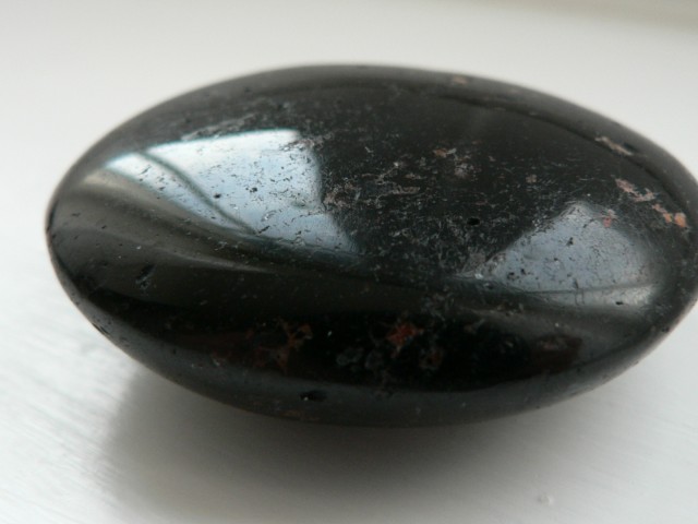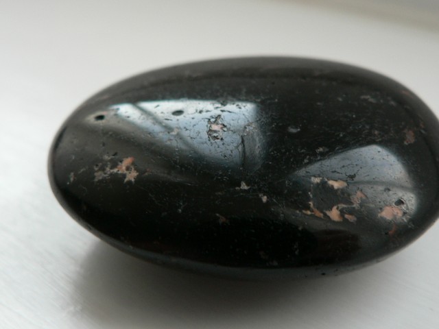 Dieser Jumbostein aus schwarzem, glänzendem Turmalin besitzt rundherum rosaroten Muskovitglimmer. Eine sehr schöne Qualität aus Madagaskar, die auch eine starke Energie ausstrahlt. Durch seine schöne Form ein toller Handschmeichler, mit seiner Tiefe von bis zu 1,7 cm geht er auch noch in die geräumige Hosentasche. Der ca. 4,5 auf 4 cm große Turmalin wiegt ca. 50 Gramm. Sie erhalten genau das abgebildete und beschriebene Unikat im Schmuckbeutel.