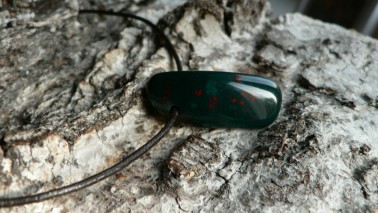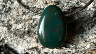 Die Bezeichnung Heliotrop kommt aus dem Griechischen (“heliou tropai“ = Sonnenwende) und bedeutet Sonnenwendstein. Er ist ein undurchsichtiger Chalcedon mit punktartigen oder aderförmigen Einlagerungen aus Eisenoxid mit rötlicher Färbung. Die dunkelgrüne Farbe stammt von eingelagerten Hornblendnadeln.Im Mittelalter hielt man die roten Punkte für Blutstropfen Christi. Deshalb unterstellte man dem Heliotrop besonders starke magische Fähigkeiten.Im Englischen wird er "bloodstone" genannt, ist aber nicht mit dem "Blutstein" genannten Hämatit zu verwechseln. Seine Vorkommen sind in Brasilien, Indien und Oregon/USA.