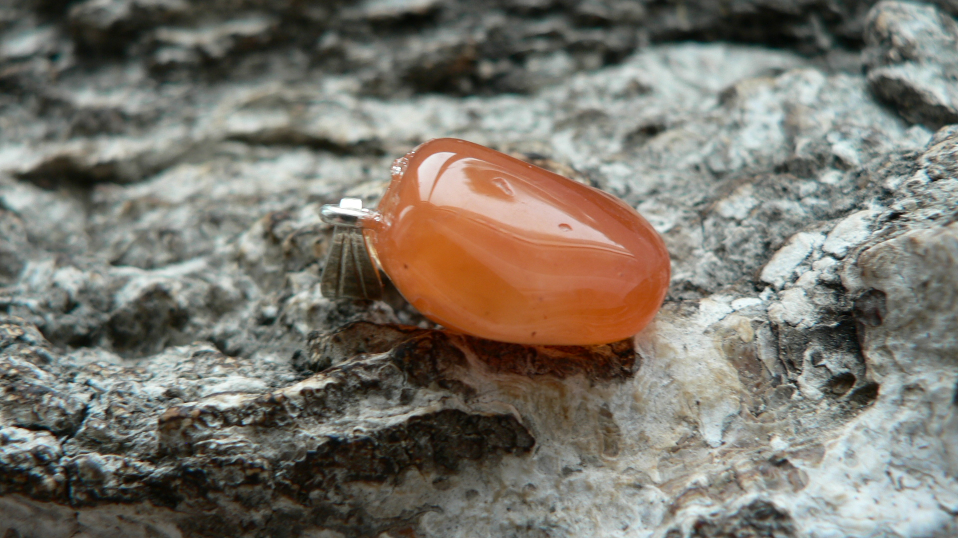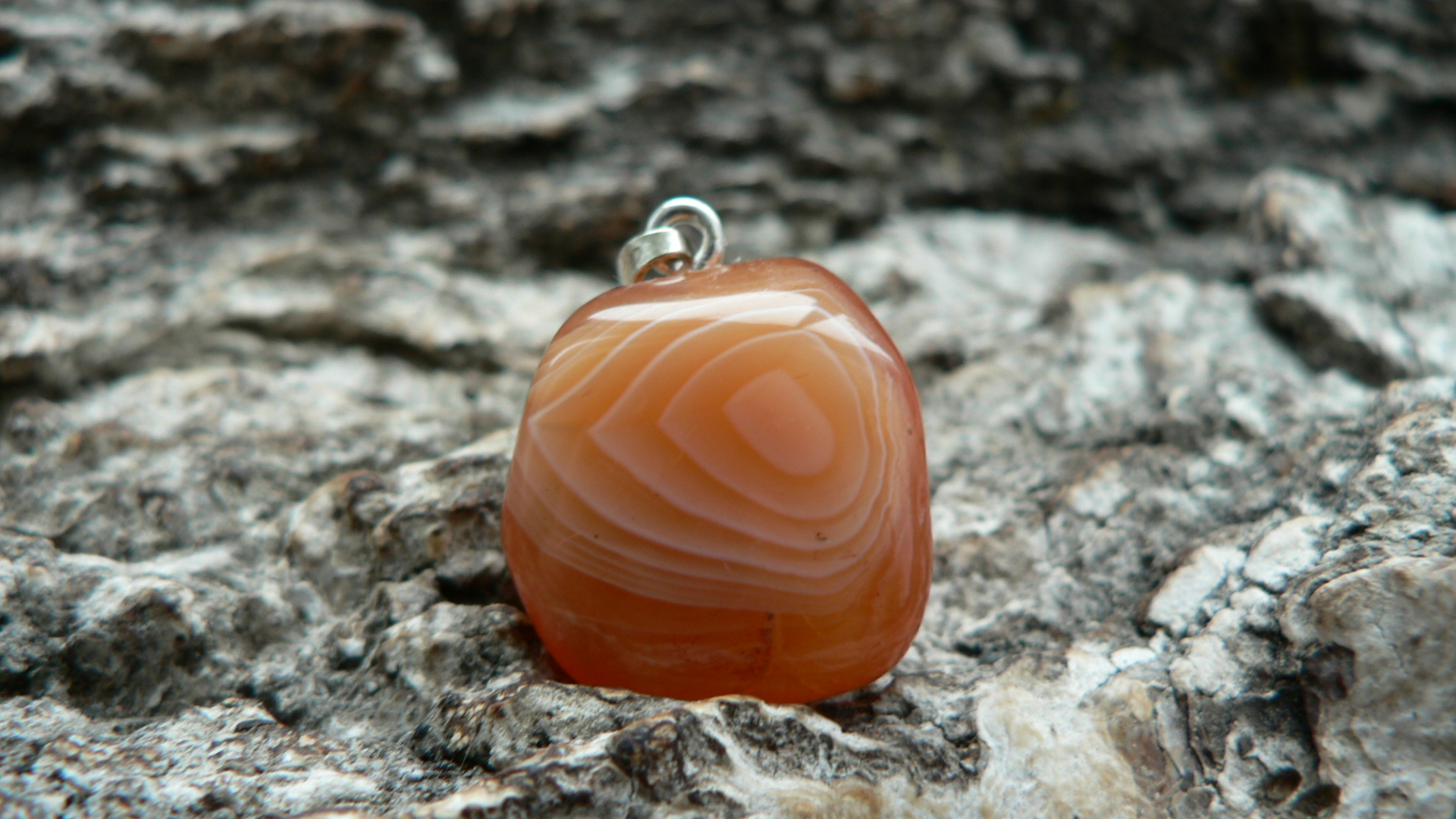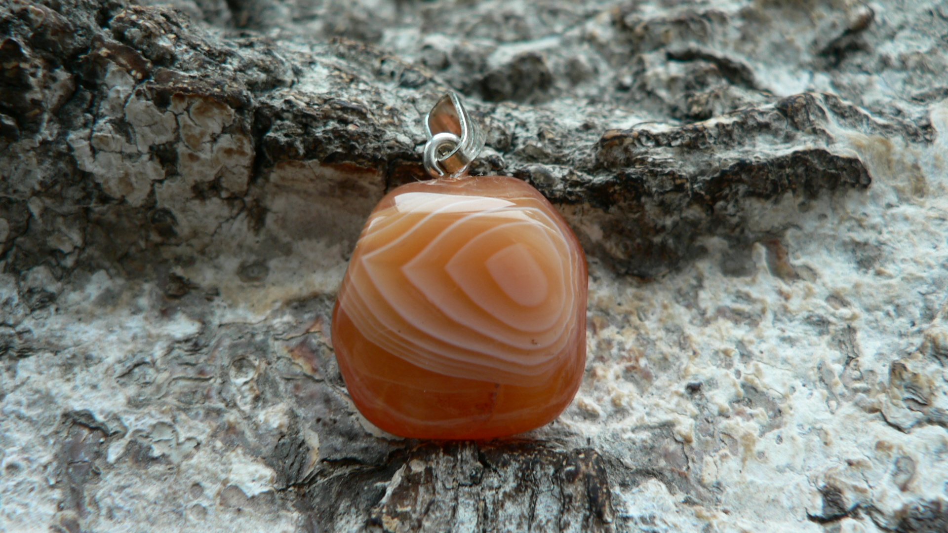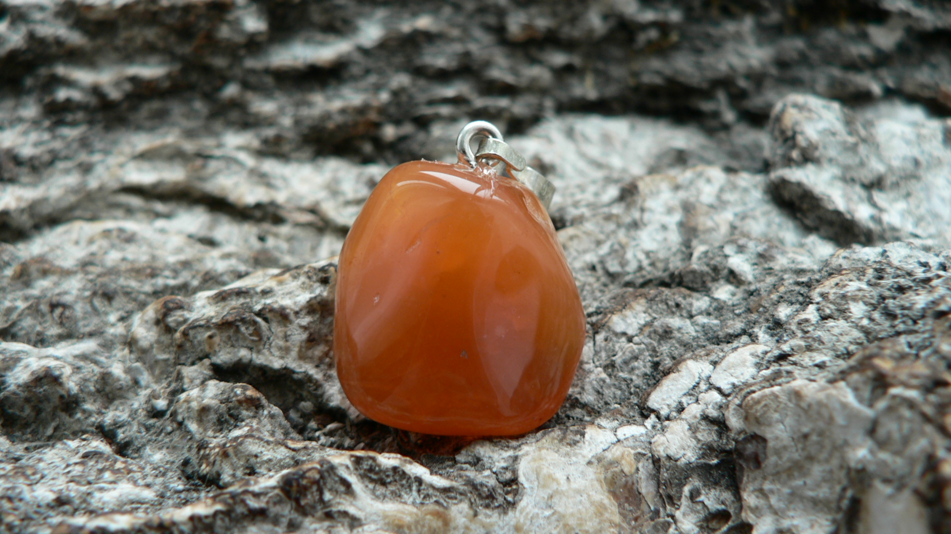 Der Karneol Rohstein für diesen Anhänger stammt aus Botswana und ist fair gehandelt worden. In Deutschland angekommen wurde der prachtvolle Karneol zu einem Freeformanhänger gearbeitet und mit einer 925er Silberöse versehen. Diese absolute Schönheit weiß zu entzücken mit seinem leuchtenden Orange sowie auf der einen Seite mit einer bildschönen Bänderung. Ohne diese gemessen, ist der Karneol ca. 1,8 auf 1,6 cm groß sowie 1 cm tief. Wir liefern das Unikat mit Lederband im Schmuckbeutel aus.