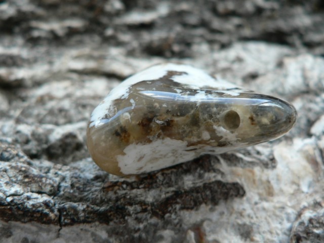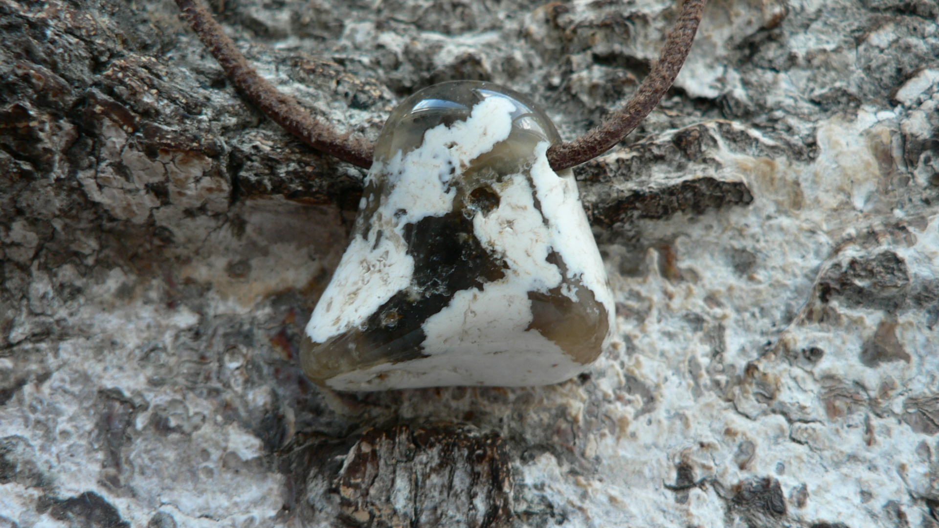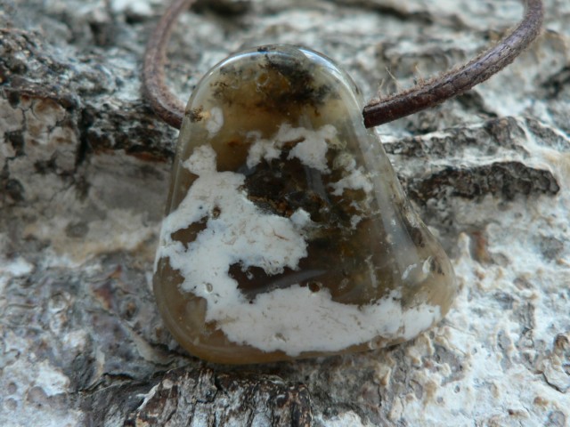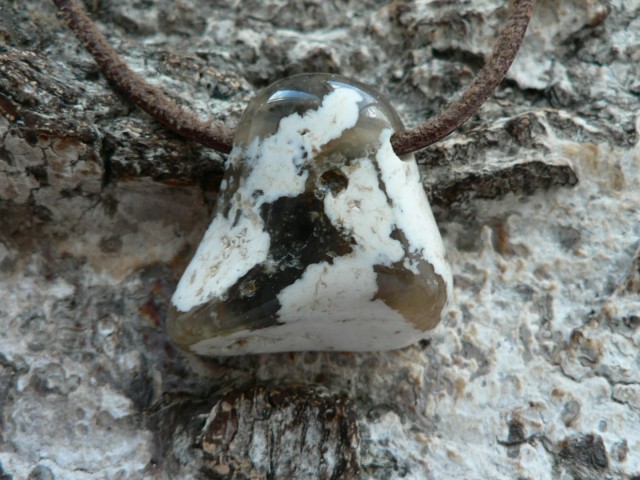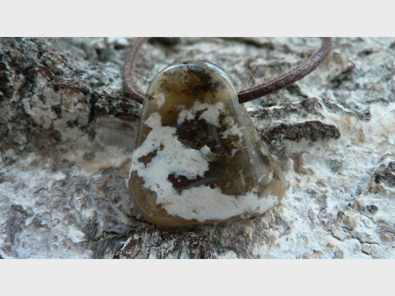 Der Rohstein der aufgrund seiner cremigen Farbgebung als Cappucino Opal bezeichnet wird stammt aus Madagaskar und zu einem Freeformanhänger bearbeitet wurde dieser in Deutschland. Es ist jedoch kein reiner Opal sondern ein Opal-Chalcedon Gemenge. Ich würe diesen Opal somit zum Kascholong dazu rechnen. Der seitlich gebohrte Cappuccino Opal ist ca. 2,7 auf 2,6 cm groß sowie 1 cm tief. Wir liefern das Unikat mit Lederband im Schmuckbeutel aus.